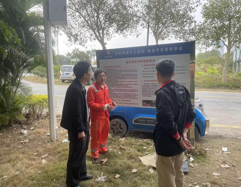 为深入贯彻落实国家、省、市、区关于做好2024年春节期间安全生产有关工作的决策部署,确保全区能源领域安全生产形势持续稳定,2月1日,澳洲幸运10 发展和改革局局长谢栋华带队对国家石油天然气管网集团有限公司华南分公司位于棠下镇周郡村奥园外滩段的输油管道进行安全生产检查。