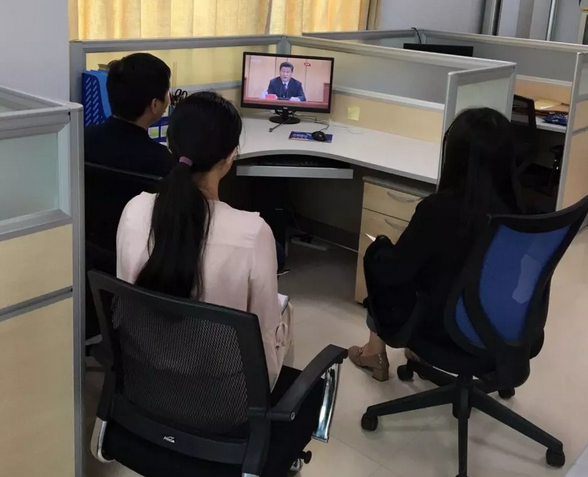 2019年4月30日上午,纪念五四运动100周年大会在北京人民大会堂举行,习近平总书记发表重要讲话。上午十时三十分,区国资机关、区属各国企分别组织了单位的全体干部职工收看大会的现场直播,认真聆听习近平总书记在大会上的重要讲话。