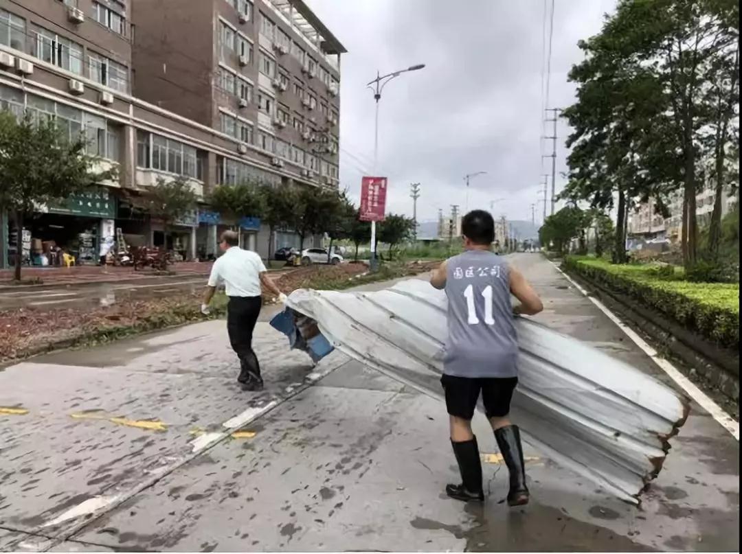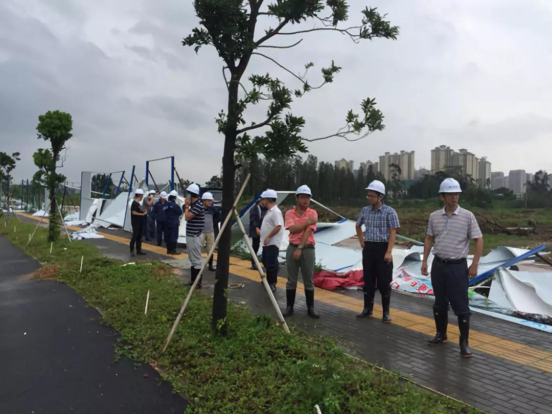 滨江管理公司立即组建由5辆工程车及15名员工组成的救灾复产工作小组,在公司主要领导的带领下,迅速奔赴滨江新区及江门人才岛两大片区的各个工程现场。同时滨江管理公司还积极发动江门中铁建科(江门)人才岛投资有限公司在完成自身抢修的前提下,成立了由8辆救援车、10余套手持工具、90多人组成的“抗风抢险队”协助潮连街道办进行救灾复产工作。