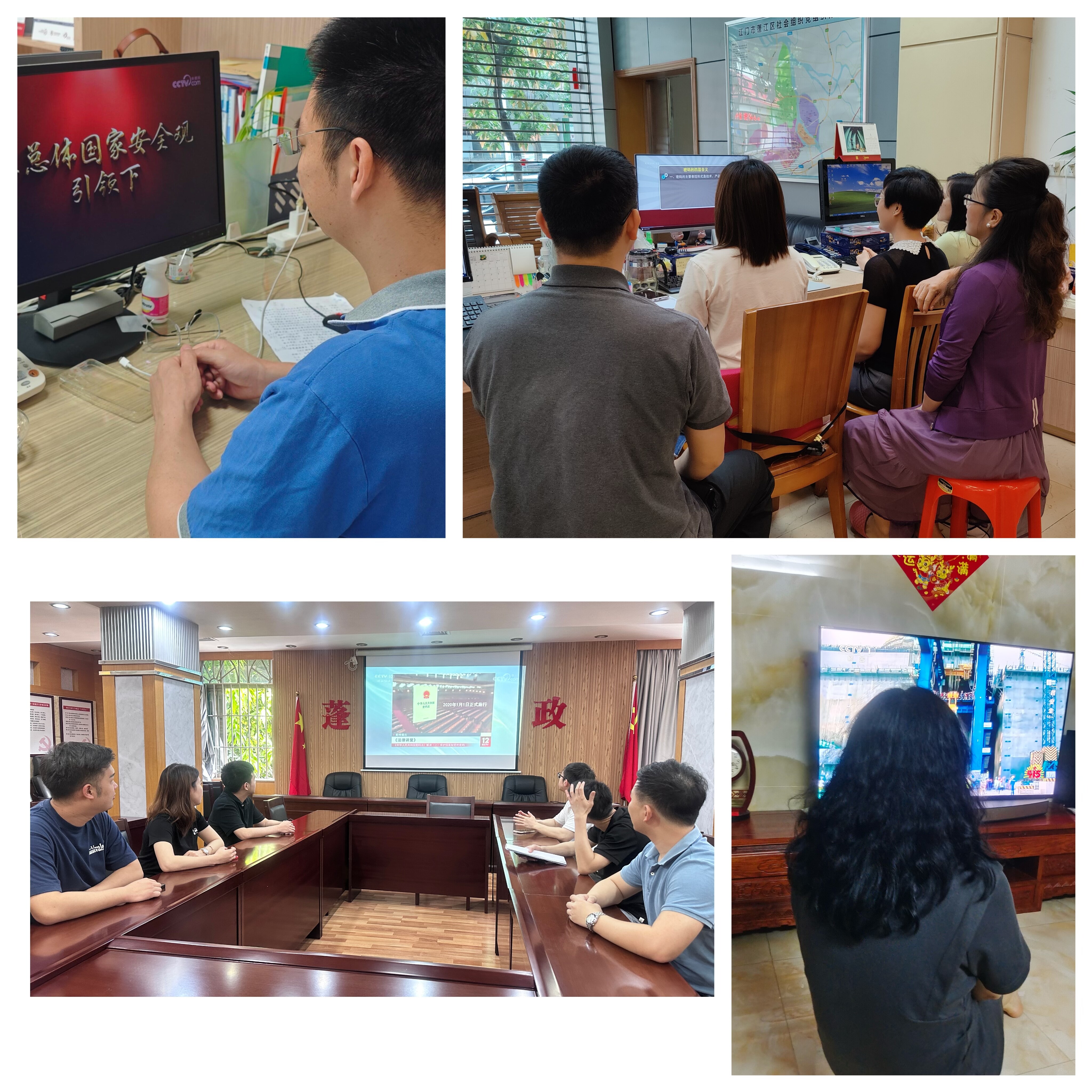 活动中,还积极发动组织党员干部分股室或者自行观看了中央广电总台制作了专题宣传片《在总体国家安全观引领下》、中央电视台《焦点访谈》密码法专题节目——《守护安全,密码在你身边》和学习强国平台——中华人民共和国密码法》解读(上、下)。
