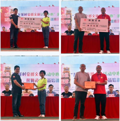 现场嘉宾代表为龙溪村豪爵文体活动中心、江门市篮协龙溪村篮球公益培训班、新会蔡李佛始祖拳会龙溪馆揭牌和篮球公益培训班、醒狮武术公益培训班启动开班。据悉,公益培训班深受村民的喜爱和支持,目前第一期培训名额已满。