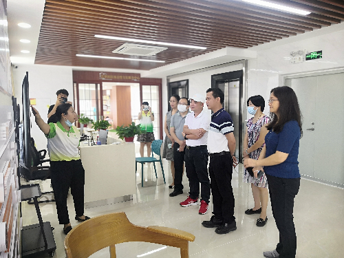 在白沙街道江华社区,指导组现场检查了“嵌入式”社区居家养老服务示范项目,一一对就餐区(益食堂)、日托区、阅览区、休闲娱乐活动区等功能区域进行了解。