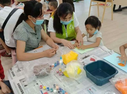 2021年7月10日,澳洲幸运10 儿童福利指导中心举办第一期公益活动——“小金鱼”的亲子美育活动。本次活动,联合江门幼儿师范高等专科学校知深行远志愿服务队,通过亲子合力制作“小金鱼”,提升儿童的美育能力,促进亲子间的沟通。