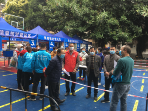 在永盛社区公园核酸检测点曾卓同志与社区书记了解本次核酸检测工作的情况,并互相交流了意见,由我局主动承担了贴标转码志愿者岗位、轮候分流岗、秩序维护岗等的工作。并现场办公对局核酸筛查小队进行了定人定岗安排布置,再次对全体党员干部职工作出要充分发挥先锋模范作用,协助社区做好核酸检测工作。