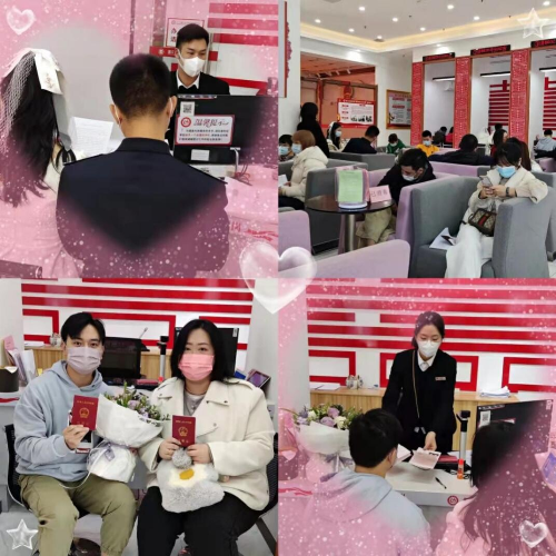 本月还将有一个婚姻登记高峰,就是2022年2月22日,因此日期的新历与农历都是相同数字,千年一遇,当天不但是星期二,更是正月廿二,被网友称为“2022最有爱的一天”。在这一天领“小红本”,成为情侣的热门选择。据悉,目前网络预约结婚登记已近百对新人。在此祝福每一对新人白头偕老,永结同心,婚姻“小红本”,承诺“爱一世”!