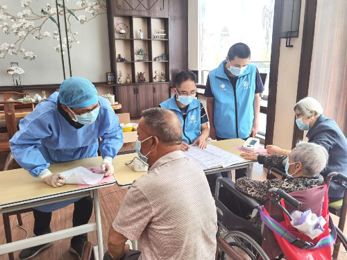 民政服务对象多数属于老弱病残等特殊群体,身体健康基础较弱,自身防疫能力不足,是感染新冠病毒风险较高的重点关注人群。区民政局积极响应区委、区政府的号召,筑牢社会免疫屏障,遵循保障重点、应接尽接、确保安全、知情同意的原则,加大动员力度,积极做好养老机构入住老年人及家属的沟通工作,消除他们对接种新冠疫苗方面的疑虑,并组织医护人员为辖区内各养老服务机构入住老年人及工作人员提供新冠疫苗上门接种服务。此外,区民政局积极调动“平安通”线上服务平台、线下居家养老站点、益食堂站点等养老服务平台,向服务对象宣传接种疫苗的必要性和重要性,大大提高了服务对象接种疫苗的积极性,并为服务对象提供便利、暖心的服务。
