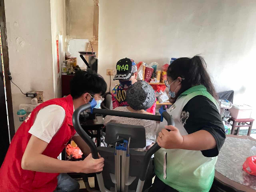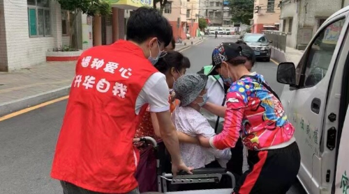 (利用上楼机,贴心接送良化西社区张婆婆(84岁,行动不便)接种疫苗)