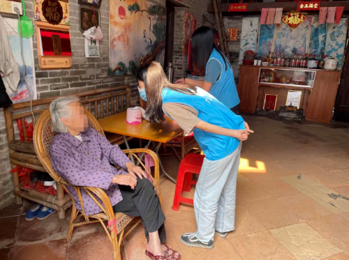区民政局凝聚社工力量,助力长者接种疫苗,通过“平安通”服务中心对长者接种疫苗进行宣传引导,将有意愿接种疫苗的长者信息主动向相关村居反馈,并联动社工机构、社会组织上门推进长者疫苗接种工作。