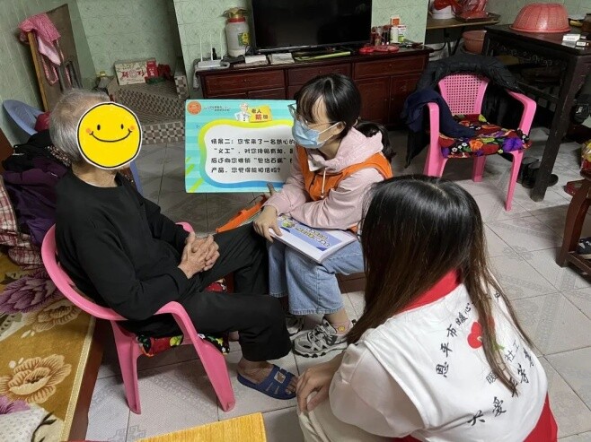 宣传发动、打击整治、总结提升是专项行动的三个关键环节,其中宣传发动贯穿始终。为扩大社会面宣传,使防范养老服务诈骗提示深入人心,区民政局设立了举报电话和举报信箱。组织发动辖区养老机构、居家养老服务站点(含“益食堂”长者饭堂)、社会组织、福彩投注站等民政服务机构积极参与宣传活动,并充分发挥“平安通”平台功能,通过发放宣传单、悬挂标语条幅等方式,推动反诈宣传进机构、进社区、进家庭,揭露养老服务诈骗的常见类型和套路,重视以案说法,注重案例化、可视化传播,揭露养老诈骗“套路”手法,对老年人“点对点”发布风险提示和预警信息。截至目前,区民政局积极指导组织开展各种活动宣传15场次,LED滚动播放3000余次,文章阅读超过8000多人次,悬挂横幅10条,发放宣传小礼品150余份。通过“平安通”信息平台,累计向服务对象提供养老诈骗线上提醒2955人次,解答相关防诈骗问题542人次,入户提醒520人次。