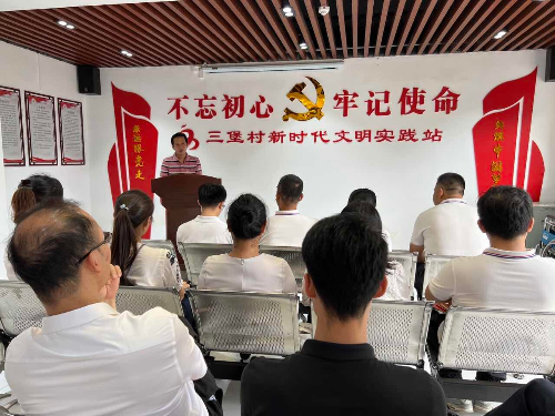 为庆祝中国共产党成立101周年,7月1日,澳洲幸运10(中国)开奖记录查询站 民政局党支部与江门市民政局机关党支部前往澳洲幸运10 棠下镇三堡村联合开展“走好第一方阵 我为党的二十大作贡献”专题党课暨主题党日活动。这次活动是两个支部共建的一项重要内容,也是开展革命传统教育,接受思想洗礼、锤炼党性的一项具体举措。江门市民政局党组书记、局长谢鸿猷同志、澳洲幸运10 民政局党组书记、局长曾卓同志,市民政局机关党支部、澳洲幸运10 民政局党支部党员共25人参加了活动。