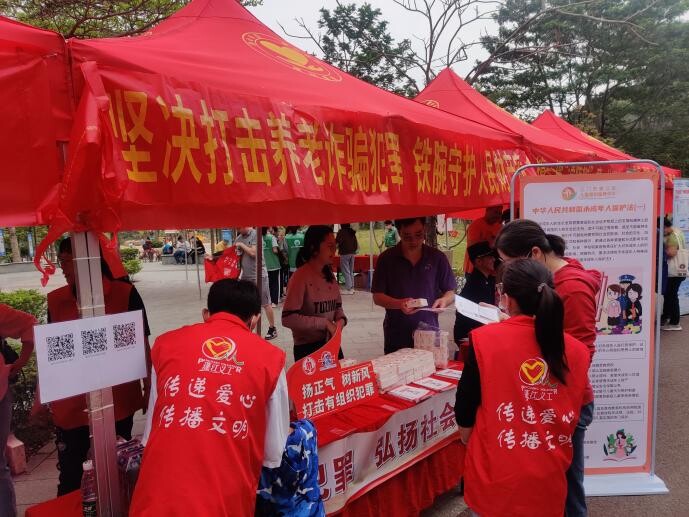 随着网络信息技术不断发展,诈骗手段层出不穷,老人家们在预防电信、养老诈骗知识方面的匮乏,进一步加剧其处于弱势的地位,在本次活动过程中,志愿者们结合老年人心理防范意识不强、辨别能力薄弱等特点,通过向路过群众发放宣传资料、以案说法、有奖问答和现场模拟诈骗过程等方式,提醒路过的群众在日常生活中要提高警惕,多捕捉家中老人们的异常行为“弱信号”,多耐心倾听他们的情感需求,避免老人家们因贪图一时的小便宜堕入诈骗陷阱。