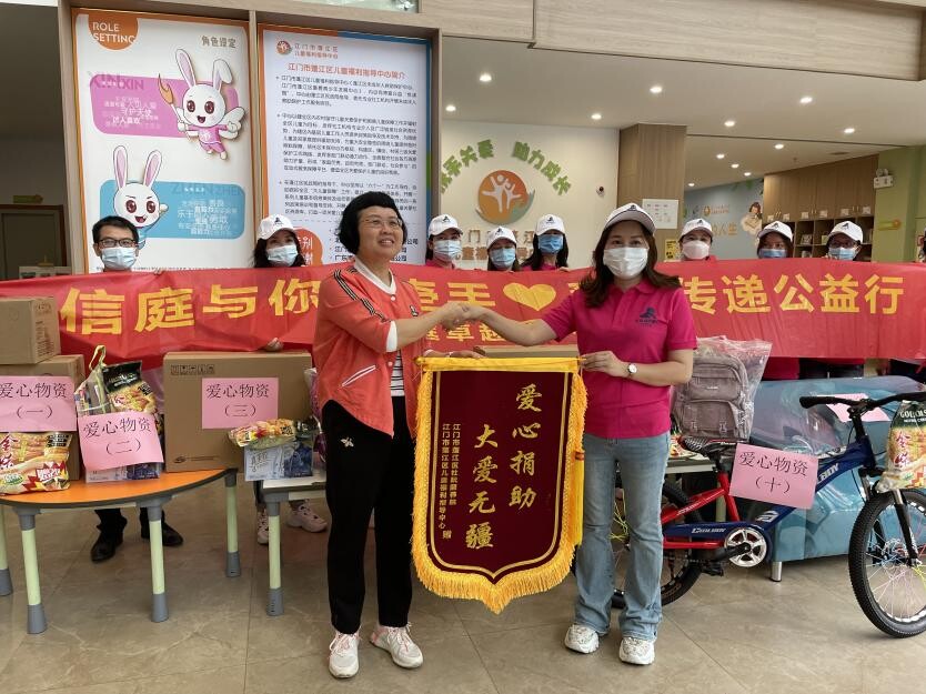 李洁凌同志向慰问团队有关负责人赠送锦旗,感谢其爱心捐赠,为区内困难群众送上温暖,同时倡导社会大众发扬大爱精神,加入关爱、支持困境儿童成长的行列。
