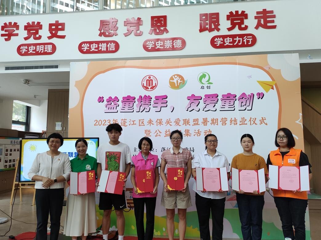 丰富多彩的暑期服务,离不开各方社会力量的支持。暑假期间,儿童福利指导中心积极联动各个成员单位积极发挥专长共同参与到暑期活动中。在结营仪式里,分别为石冲社区党群服务中心、江门市小象物业管理有限公司、广东江门幼儿师范高等专科学校 、江门市明哲社区心理服务中心、澳洲幸运10 吉吉体育健康服务中心、多元梦想课堂项目组、广东省千禾社区公益基金会等合作单位颁发感谢函,肯定他们的支持,促进儿童友好联盟的服务合作。