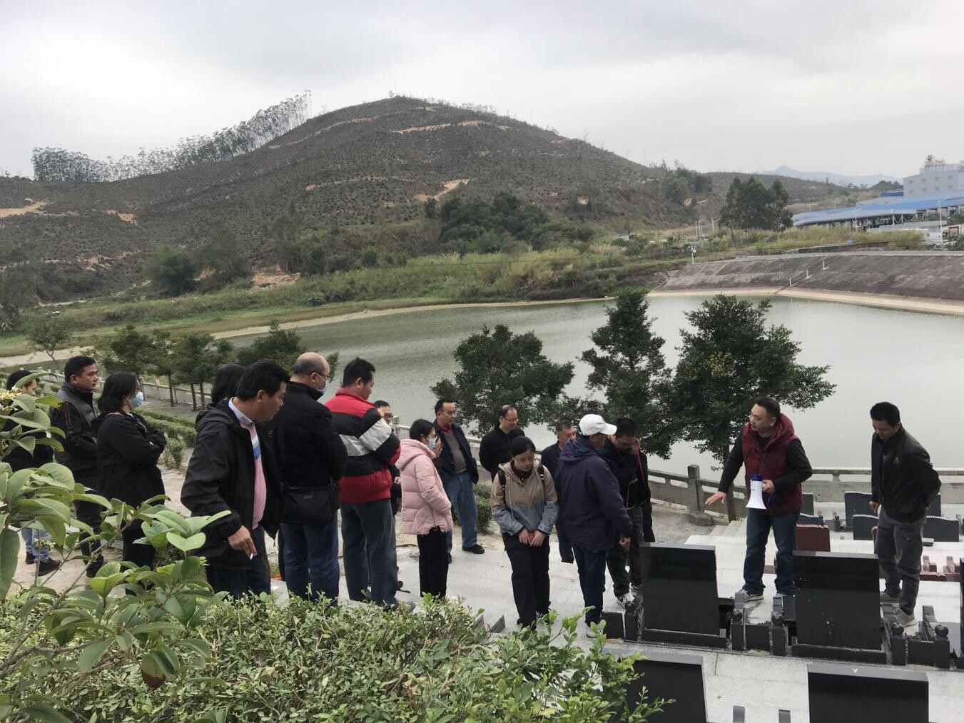 在杜阮镇天子墓园参观小型墓葬区。参观过程中,天子墓园负责人详细介绍节地墓葬区设施建设管理工作方面的经验做法,认真解答参观人员提出的问题,