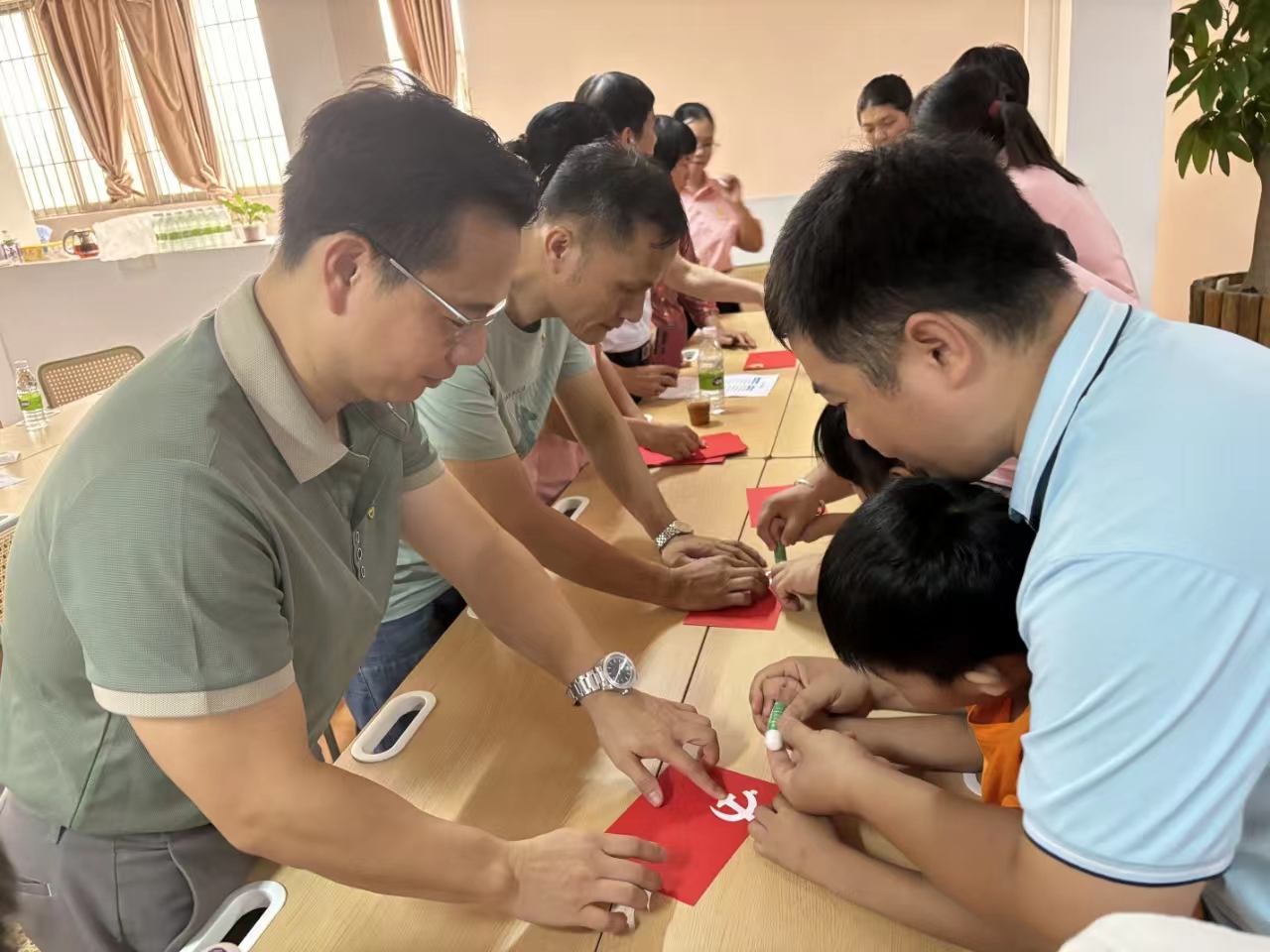(现场观看红色电影《建党伟业》,齐心协力制作党旗)