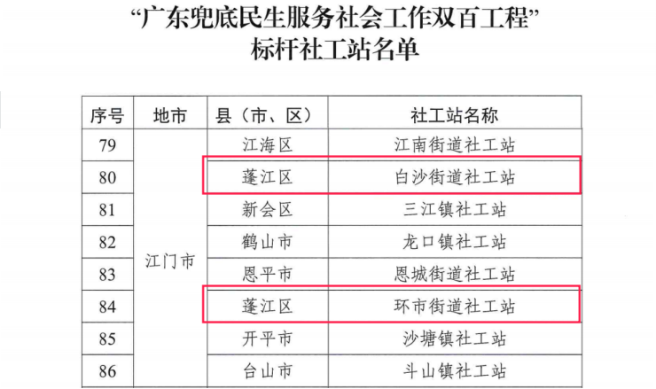 近日,广东省民政厅公布“广东兜底民生服务社会工作双百工程”标杆社工站名单,环市街道社工站和白沙街道社工站凭借扎实的民生服务、创新的服务模式和显著的服务成效,荣获省“标杆社工站”称号。