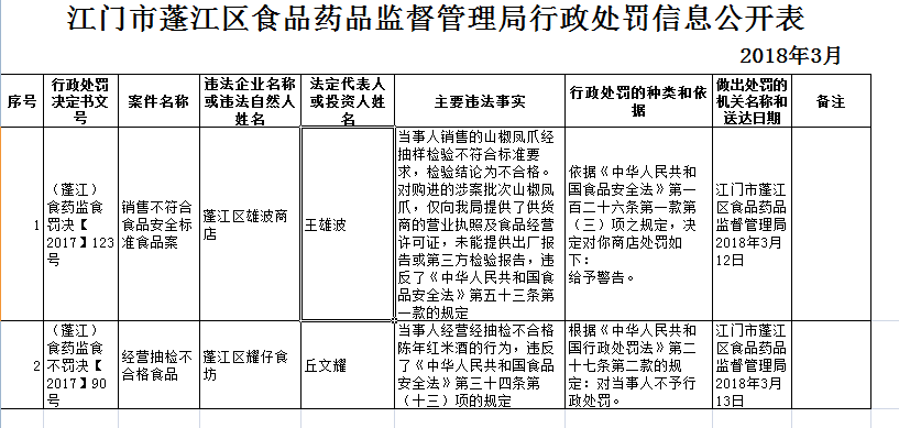 澳洲幸运10(中国)开奖记录查询站 食品药品监督管理局行政处罚信息公开表(3月)