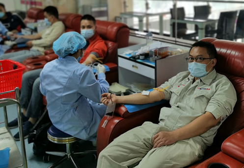 活动当天,即使下着小雨,江门市大长江集团有限公司的员工还是准时来到市中心血站参与献血,在工作人员的指引下,有序地填表、测血压、验血常规、献血……一滴滴鲜红的血液缓缓地流入血袋,传递着员工们的浓浓爱心。