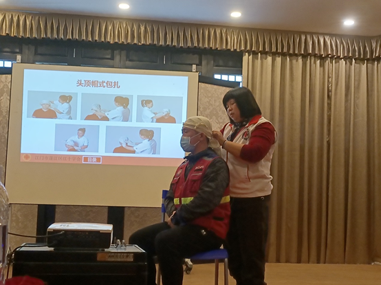本次培训的师资团队由江门市红十字会组成,老师们通过“理论+演示+实操+成效检验”的方式为参训学员开展宣传培训,着重对救护概论、心肺复苏,创伤救护等应急救护知识进行了详细讲解,并通过模拟演示心肺复苏急救技能和AED(自动体外除颤仪)的使用方法,讲解了成人和婴幼儿心肺复苏的不同操作方法,现场还邀请学员上台模拟受伤场景,演示了创伤救护的要点。