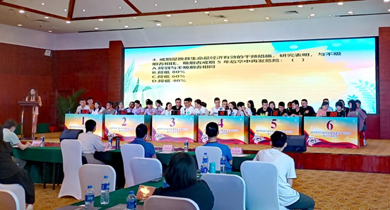 谁英雄谁好汉,知识竞赛比比看。“读书写字时,眼睛与书本最佳距离为多少厘米?”“选B,33厘米”……第一环节知识竞赛分两轮进行,分别是必答题、抢答题。参赛选手有备而来,各代表队一展风采,抢答环节更是紧张刺激。