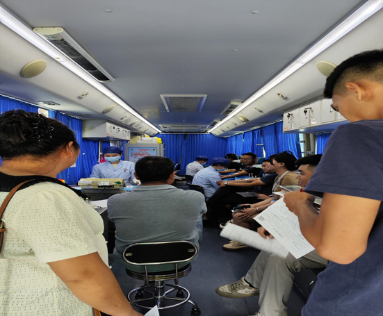 活动启动后,附近不少居民踊跃加入无偿献血的行列。在流动献血车前,大家有序排队,填写无偿献血登记表、血压测量、录入电脑、血液初筛、献热血。他们以捐献热血的方式,为生命助力、为爱礼赞。