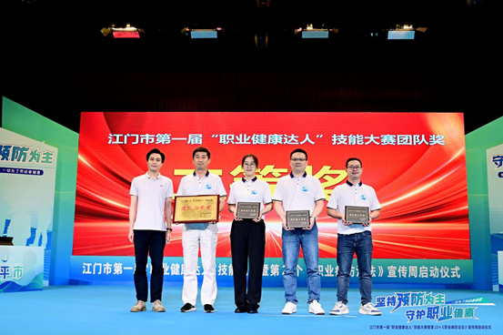 我区选派的3名参赛队员均来自江门市大长江集团有限公司,他们利用工余时间积极备战,在比赛中赛出了风格,展现了我区企业员工的精神面貌和竞赛水平。在知识竞赛个人挑战、知识竞赛团队提速中取得第一名;在知识竞赛巅峰抢答中取得第二名;在技能展示中荣获二等奖,在江门市第一届“职业健康达人”技能大赛总分排名第二,最终获得比赛团队二等奖的好成绩。