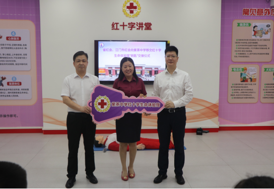应急救护知识普及再添新阵地——江门市紫茶中学红十字生命体验馆“钥匙”交接仪式举行
