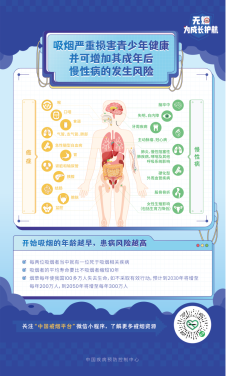 科学研究表明,吸烟和二手烟暴露可导致癌症、心血管疾病、呼吸系统疾病等多种健康问题。为了我们自己、家人和社会的健康,我们倡议: