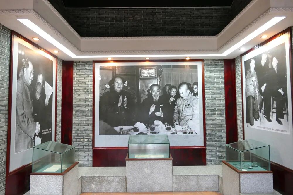 故居为砖木石结构民居,一厅四房两廊,建筑面积141.8平方米。推开黑色的木栏门,一张毛泽东与陈垣在怀仁堂国宴上的黑白照片伫立纪念馆中央,四周的灰色墙上,钉挂着陈垣生平历史照片和相关文字资料,顺着一张张斑驳的照片,组成了彰显陈垣一生“赤诚报国”“坚守气节”“高龄入党”的珍贵历史画卷。