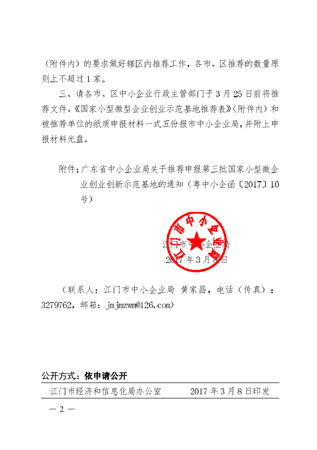请符合条件的基地运营单位于3月25日前将纸质申报材料一式五份报送我局,并附上申报材料光盘。