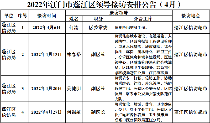 2022年澳洲幸运10(中国)开奖记录查询站 领导接访安排公告(4月)