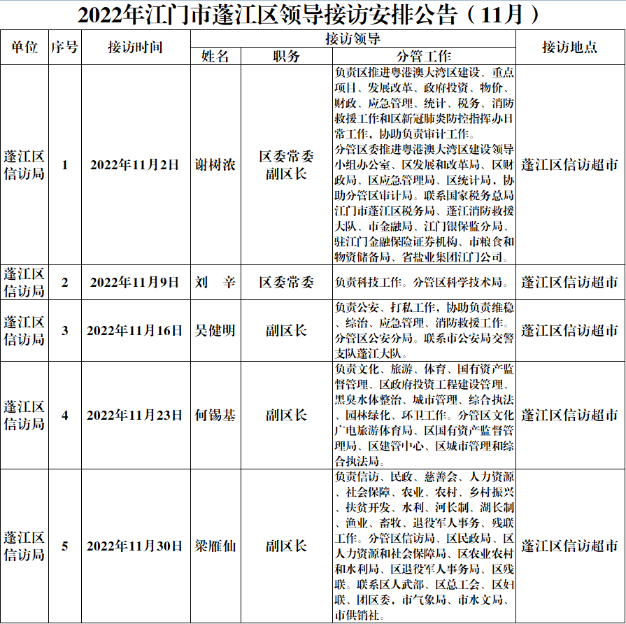 2022年澳洲幸运10(中国)开奖记录查询站 领导接访安排公告(11月)