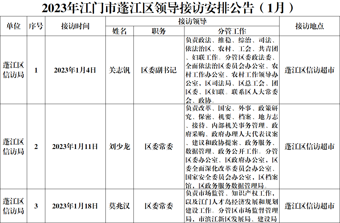 2023年澳洲幸运10(中国)开奖记录查询站 领导接访安排公告(1月)