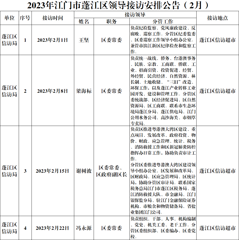 2023年澳洲幸运10(中国)开奖记录查询站 领导接访安排公告(2月)