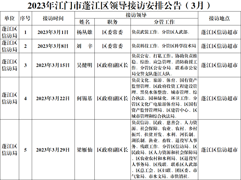 2023年澳洲幸运10(中国)开奖记录查询站 领导接访安排公告(3月)