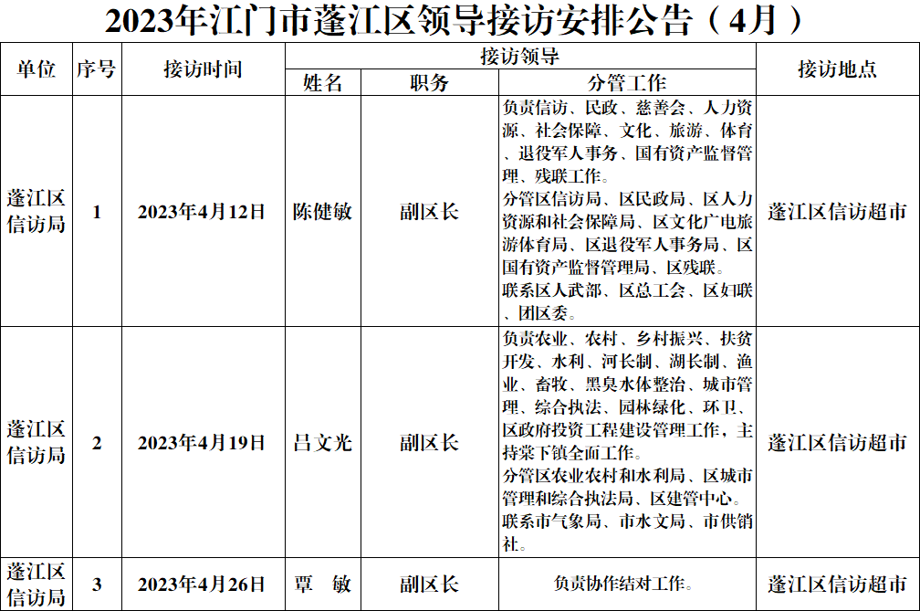 2023年澳洲幸运10(中国)开奖记录查询站 领导接访安排公告(4月)