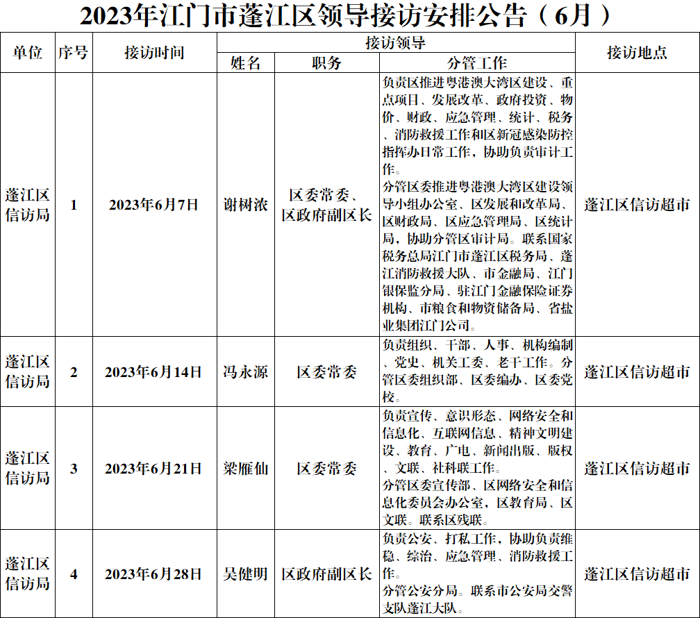 2023年澳洲幸运10(中国)开奖记录查询站 领导接访安排公告(6月)