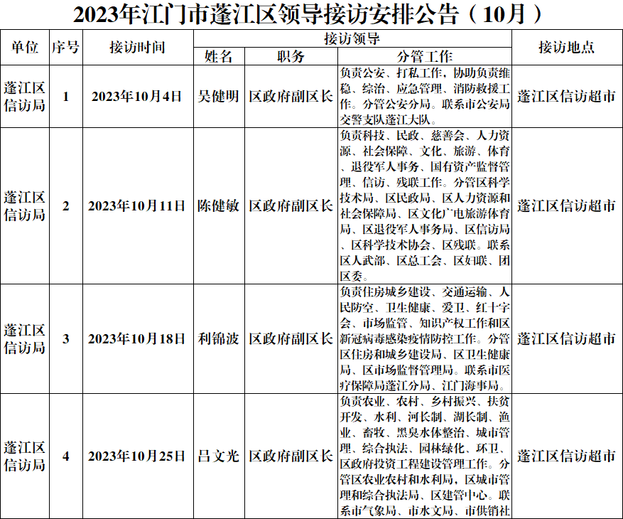 2023年澳洲幸运10(中国)开奖记录查询站 领导接访安排公告(10月)