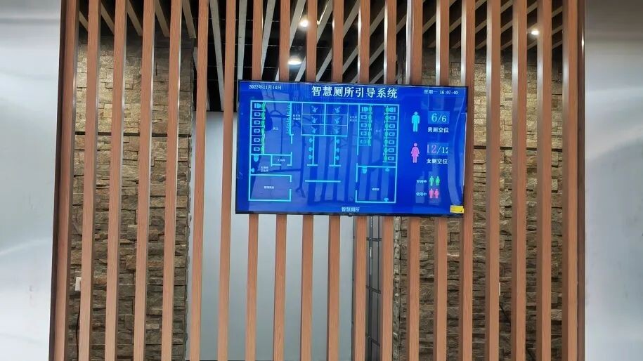 一楼智慧公厕引导系统大屏幕上,男女卫生间空闲蹲位等信息一目了然