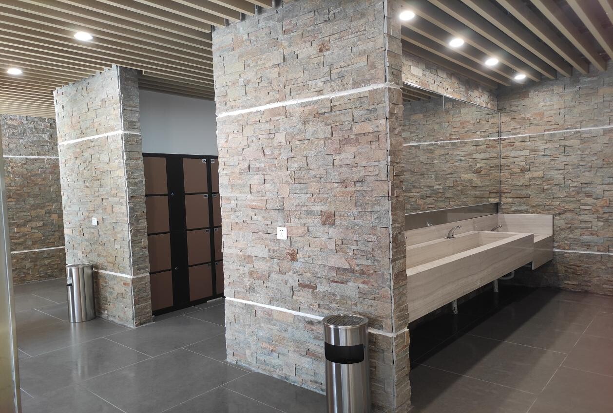本次升级改造的公厕位于群星公园停车场,毗邻南门入口。改造前,日常如厕人流量较大。原有建筑陈旧仅有厕位3个,墙体残旧渗水、门窗破损、设施陈旧、缺少无障碍设施,日常使用中空气十分浑浊难闻。改造后,在景观上,建筑外墙采用符合生态自然风格文化石,在外观上体现美观大方;在功能上,设有男女卫生间厕格20个,多个厕格方便更多的市民使用。